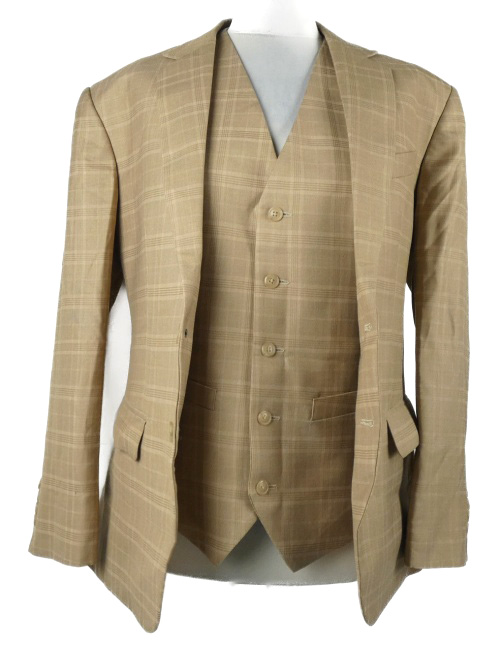 • 2set - Pánske béžové kockované sako + spoločenská vesta