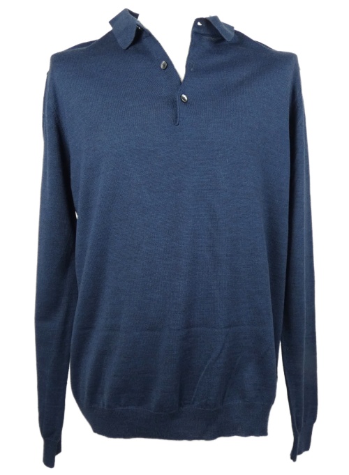 Pánsky tmavomodrý vlnený sveter s golierikom M&S
