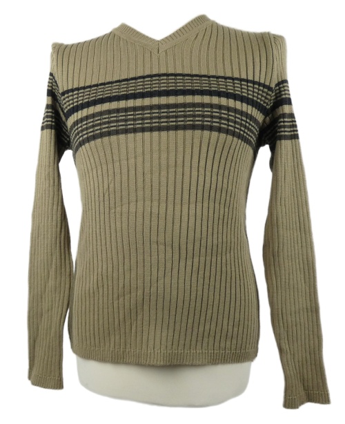 Pánsky khaki rebrovaný sveter s pruhmi Zara