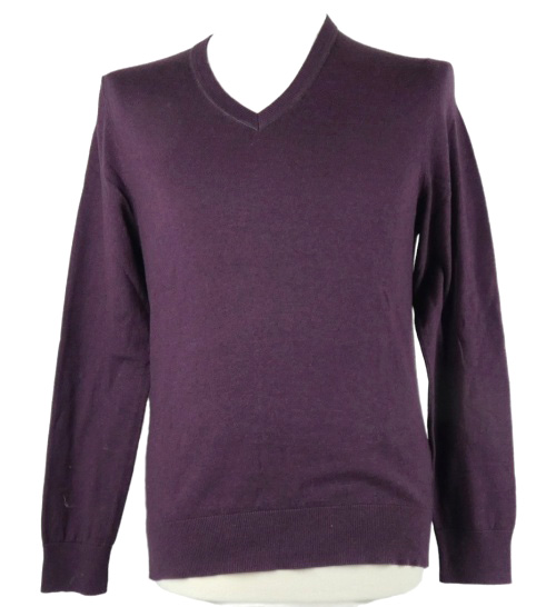• Pánsky purpurový kašmírový sveter s véčkovým výstřihem S. Oliver