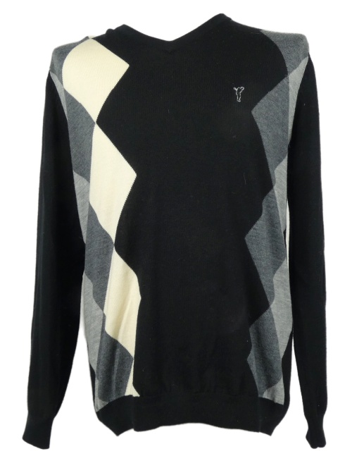 Pánsky čierno-sivo-biely károvaný vlnený sveter Golfino