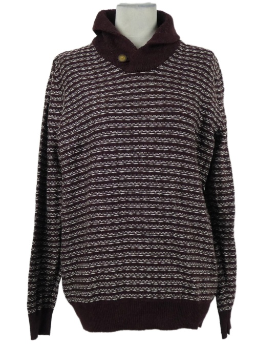 • Pánsky vínovo-biely vzorovaný vlnený sveter so stojačikom Burton