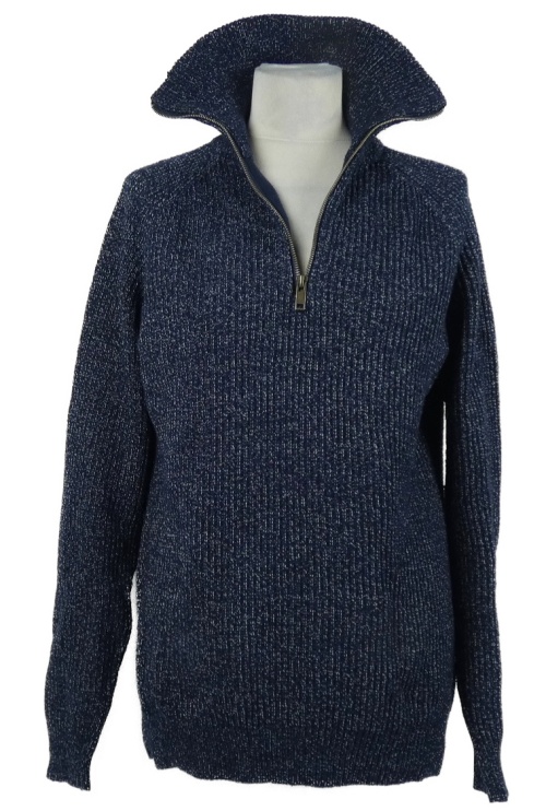 Pánsky tmavomodrý melírovaný sveter s golierikom George