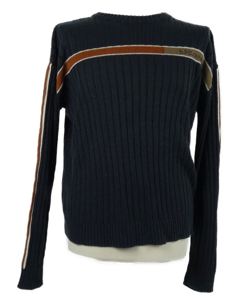 Pánsky tmavomodrý rebrovaný sveter s pruhmi