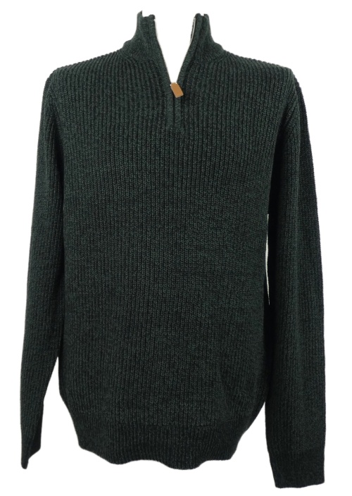 Pánsky kaki-čierny melírovaný sveter so stojačikom George