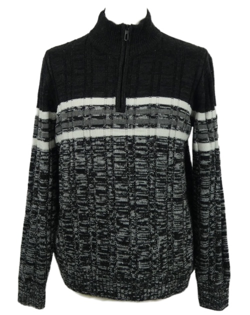 Pánsky čierno-sivý meírovaný sveter s pruhmi