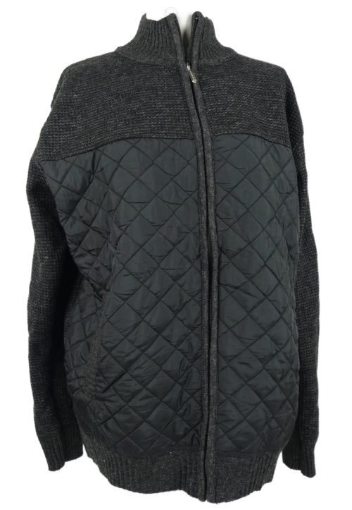 Pánsky čierno-sivý melírovaný sveter s šusťákovým PD