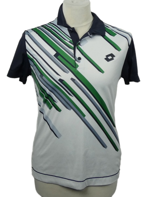 Pánske bielo-tmavomodro-zelené vzorované športové polo tričko Lotto