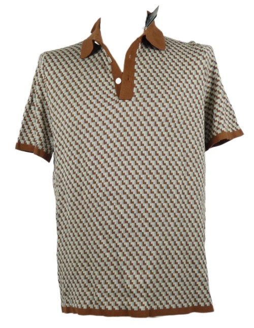 Nové - Pánske hnedo-modré vzorované pletené tričko s golierikom Perry Ellis