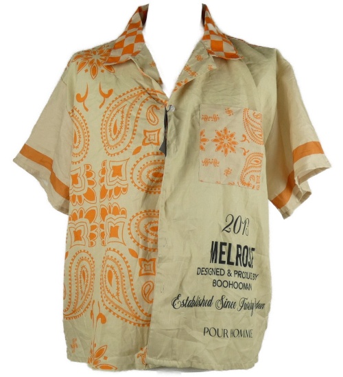 Nové - Pánska béžovo-oranžová vzorovaná košeľa Boohoo